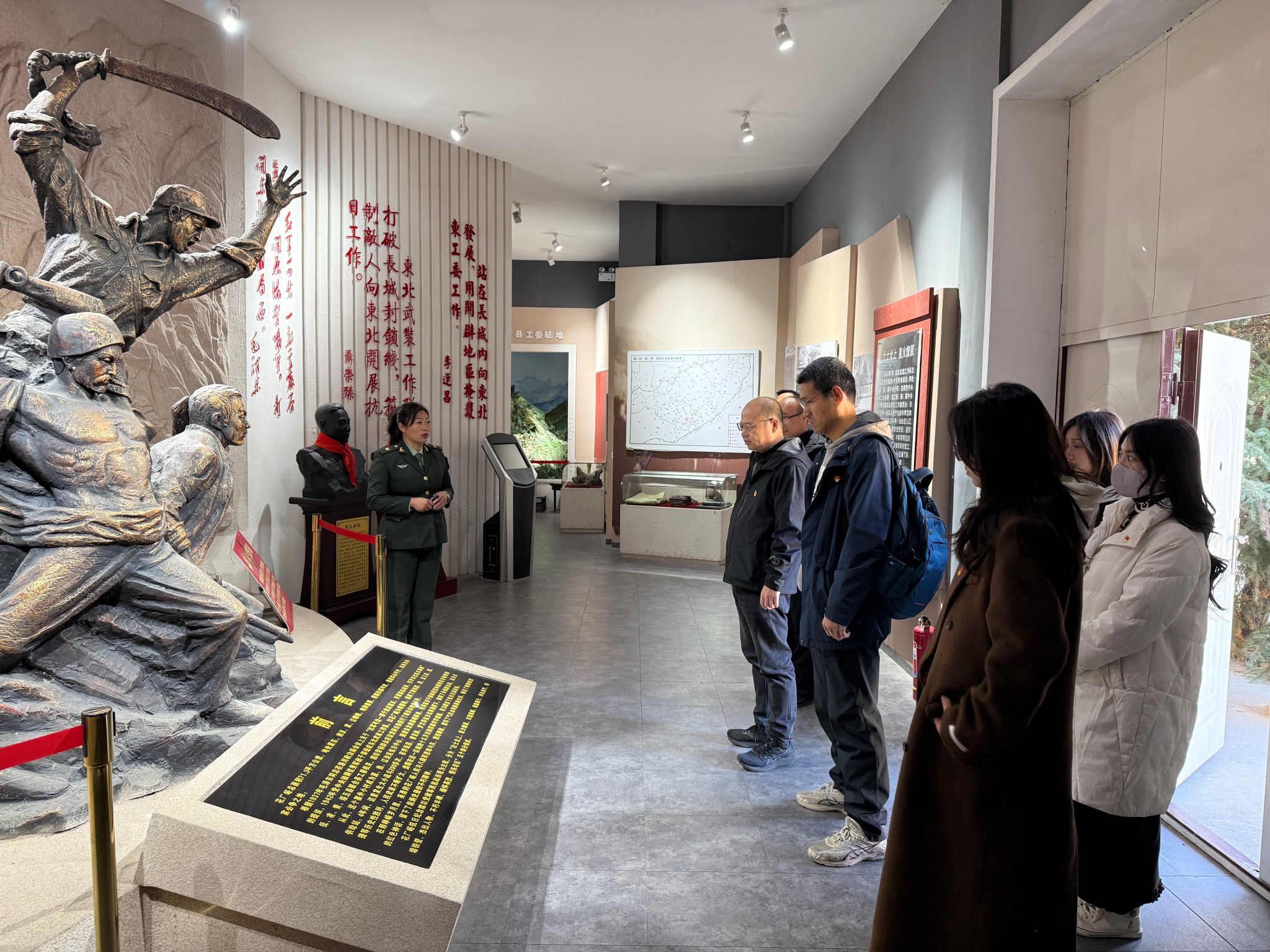 花厂峪作为冀东抗日根据地的重要组成部分,承载着厚重的革命历史记忆。走进庄严肃穆的抗日纪念馆,一幅幅泛黄的老照片、一件件锈迹斑斑的革命文物、一个个感人至深的英雄故事,瞬间将大家带回了烽火连天的抗战岁月。在讲解员的深情引领下,全体人员认真聆听了冀东抗日军民在极端艰苦的条件下,浴血奋战、保家卫国的英勇事迹,详细了解了花厂峪抗日根据地从建立、发展到壮大的艰难历程,深刻感悟到革命先烈为民族独立和人民解放抛头颅、洒热血的崇高气节与家国情怀。