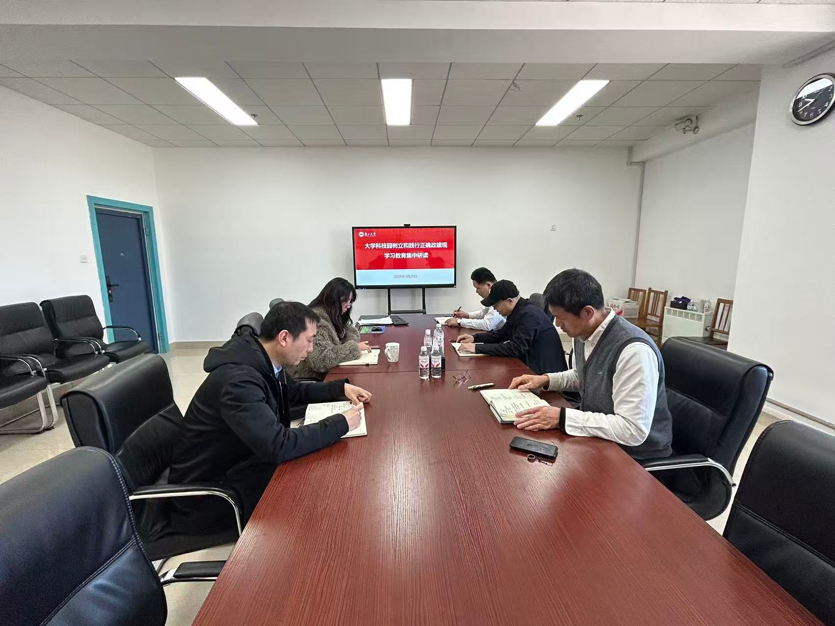为深入学习贯彻习近平总书记关于树立和践行正确政绩观的重要论述,筑牢思想根基、强化使命担当。3月20日上午,大学科技园党支部在世纪楼1412会议室组织开展政绩观学习教育读书班集中研读活动。党支部书记郑海武主持会议,全体党员参加学习。