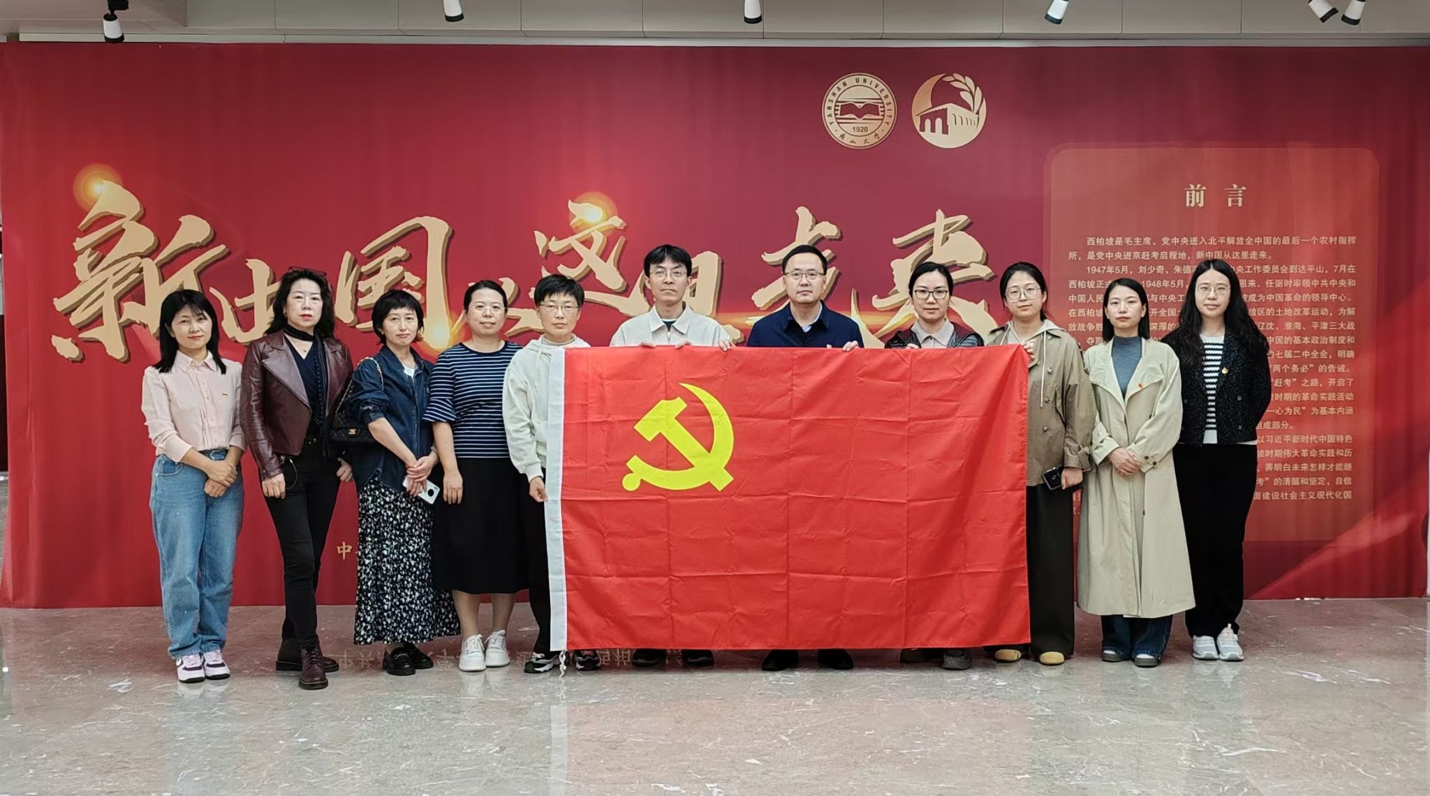 为深入学习贯彻习近平新时代中国特色社会主义思想与党的二十大精神,推动深入贯彻中央八项规定精神学习教育走深走实,深刻领悟以“两个务必”为核心的西柏坡精神,10月13日下午,档案馆(校史馆)党支部全体党员前往西校区图书馆一楼展厅,集体参观《新中国从这里走来——西柏坡精神主题展览》。