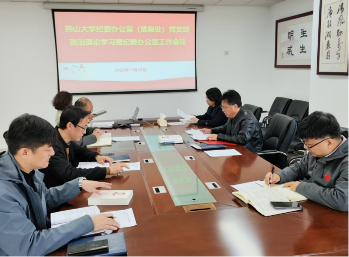 11月28日,纪委办公室(监察处)党支部在世纪楼1811会议室,组织召开政治理论学习会暨纪委办公室工作会议。会议由纪委副书记、纪委办公室主任、监察处处长赵希海主持,支部党员参会。