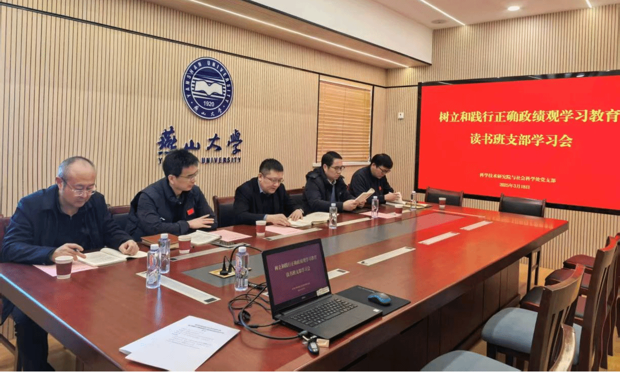3月18日下午,科学技术研究院与社会科学处党支部在世纪楼1008会议室组织召开“燕山大学学习教育读书班”第一次集中研学会,党支部全体处级干部参加会议。会议由党支部书记严书亭主持。