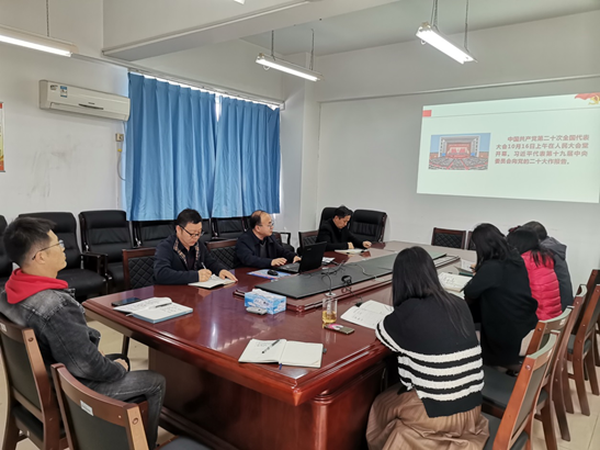 4月7日下午,研究生院党支部在世纪楼712党员活动室召开专题学习会,学习宣传贯彻党的二十大精神。本次专题学习会由研究生院党支部书记、院长卢辉斌主讲,党支部全体党员参加了专题学习会。